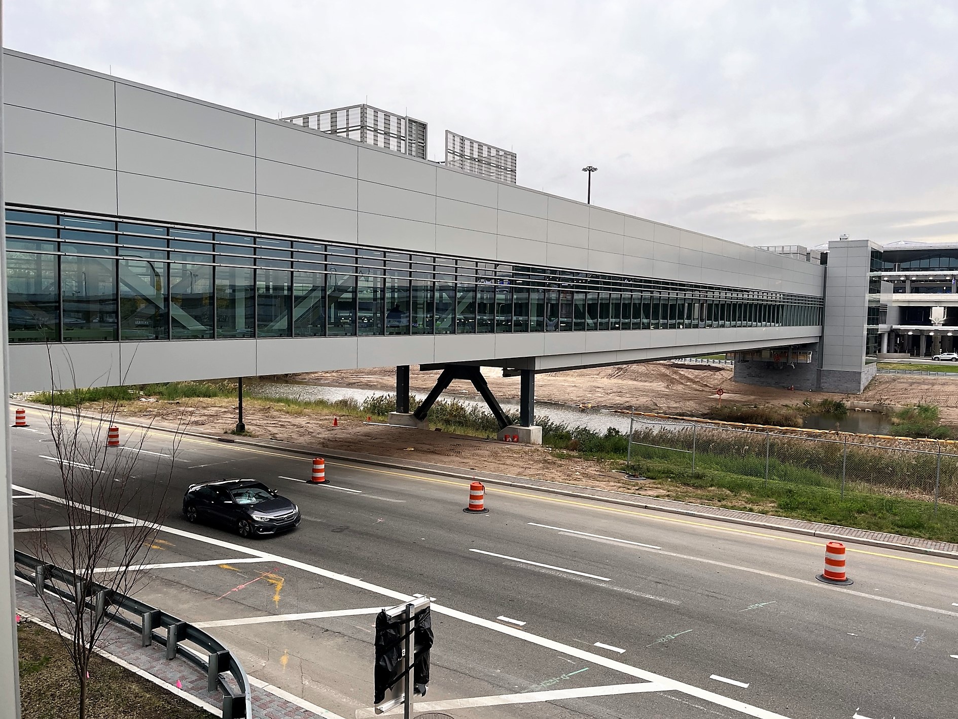 - A fully enclosed, elevated pedestrian walkway that connects the 3,000-passenger remote parking garage; the current and future AirTrain stations; the other terminals; the two existing AirTrain car rental stations, and the future consolidated car rental (ConRAC) facility